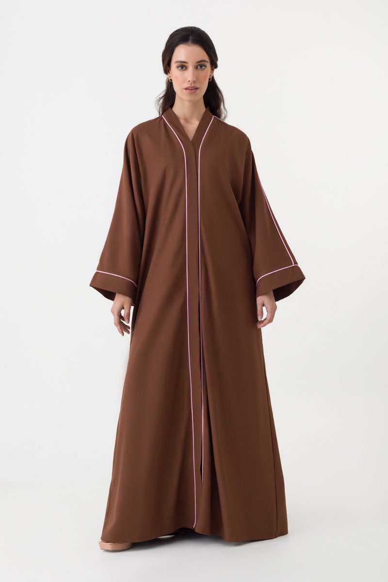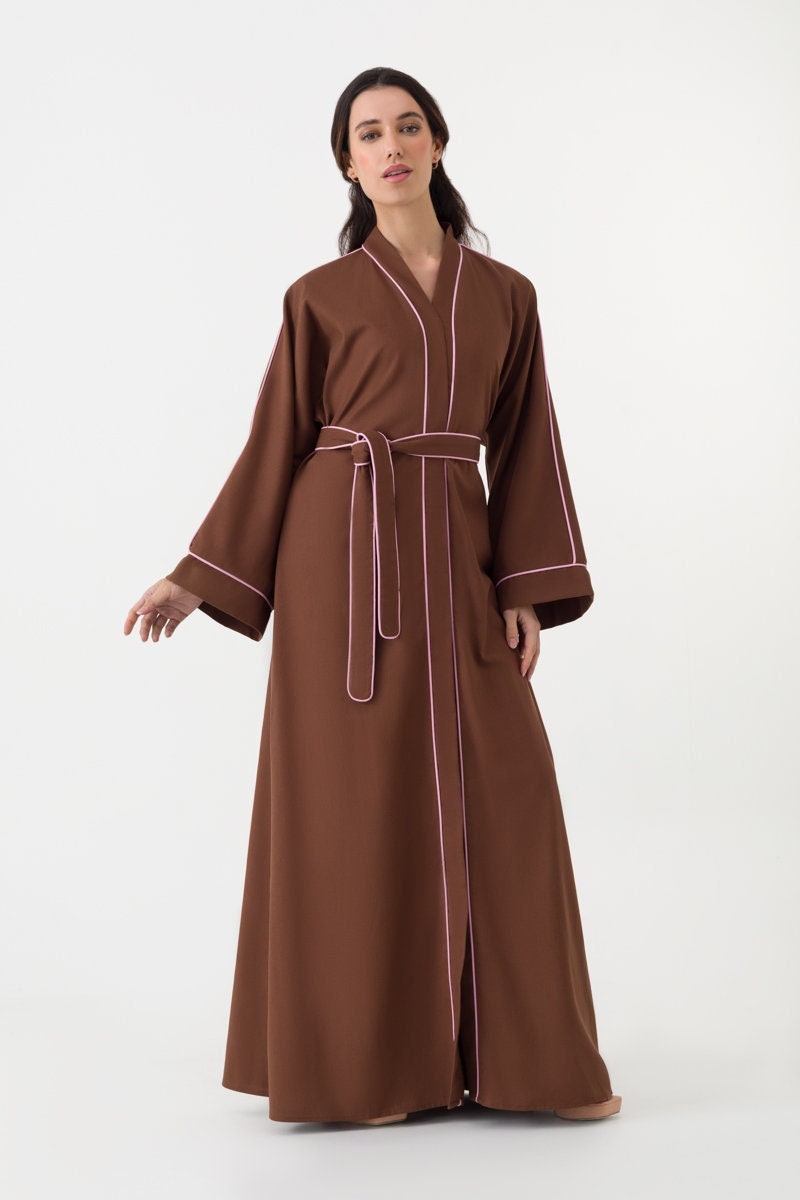Cotton Linen Abaya in Brown