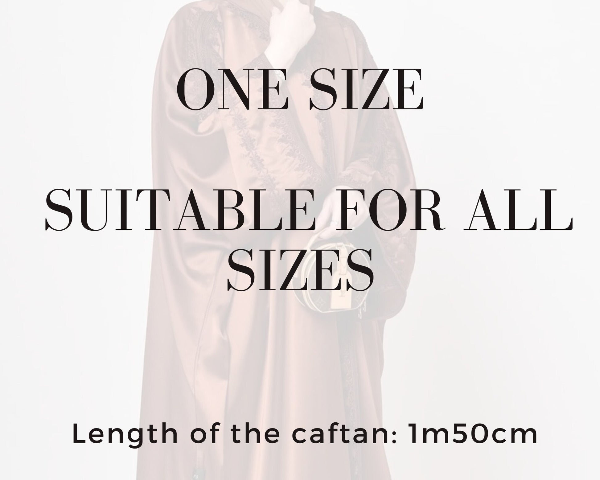 This one-size, standard-fits-all caftan will fit all body types thanks to its Farasha cut.